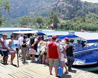 Dalyan'dan İztuzu Plajı'na saat 09:30'da kalkan tekneler, nehir kenarındaki ana beton iskeleden yolcularını alarak seferlerine başlar.
